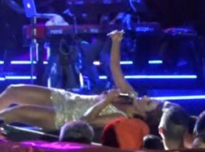 Ivete Sangalo deita no palco para tirar foto com fã durante show