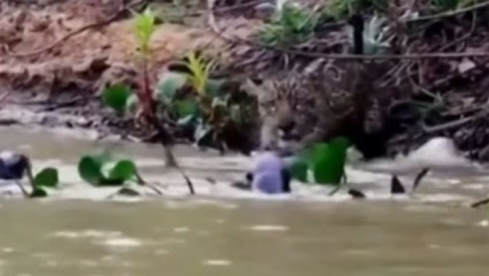 Ariranhas unidas 'gritam' e espantam onça-pintada no Pantanal de MT; veja