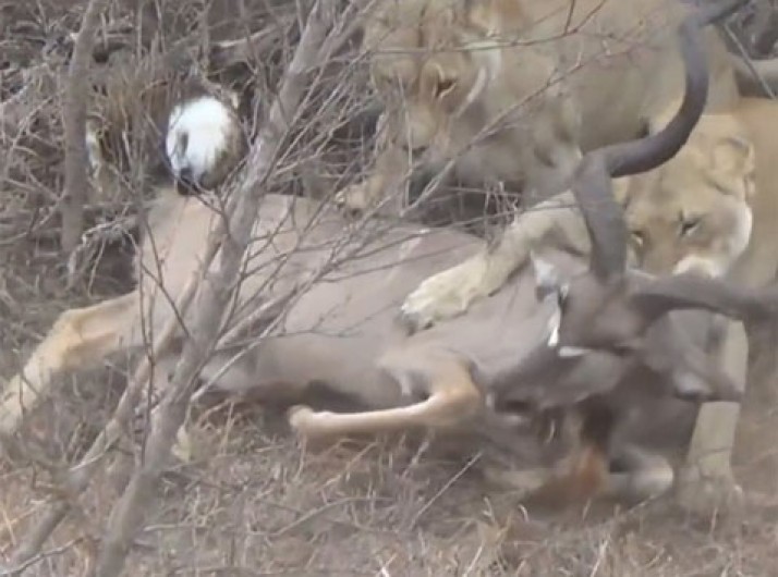 Turistas flagram leoas atacando grande antílope em parque africano