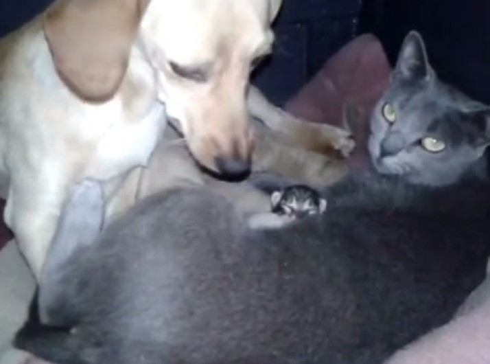 Gata tem filhotes dentro da casa de cachorra
