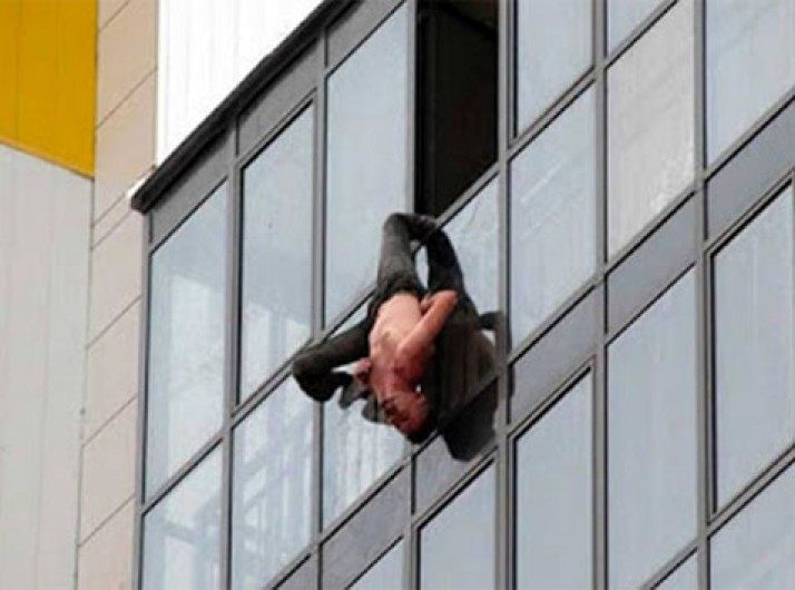 Russo fica pendurado pela calça por 30 minutos no 15º andar de prédio