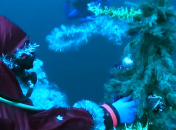 Mergulhadores decoram árvore de Ano-Novo embaixo d'água na Rússia