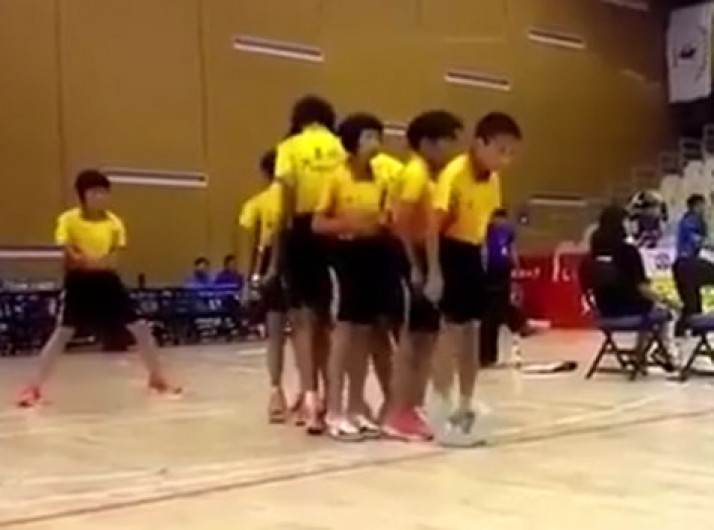 Várias crianças pulam corda ao mesmo tempo sem errar