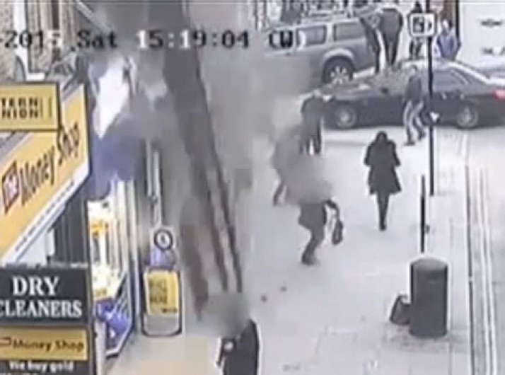Telhado desaba sobre calçada e pedestres escapam por pouco