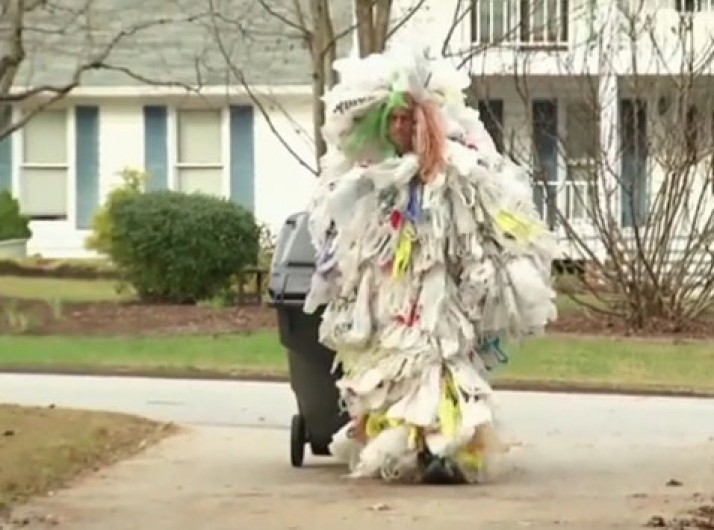 Americano usa 500 sacolas para criar "monstro" e incentivar reciclagem