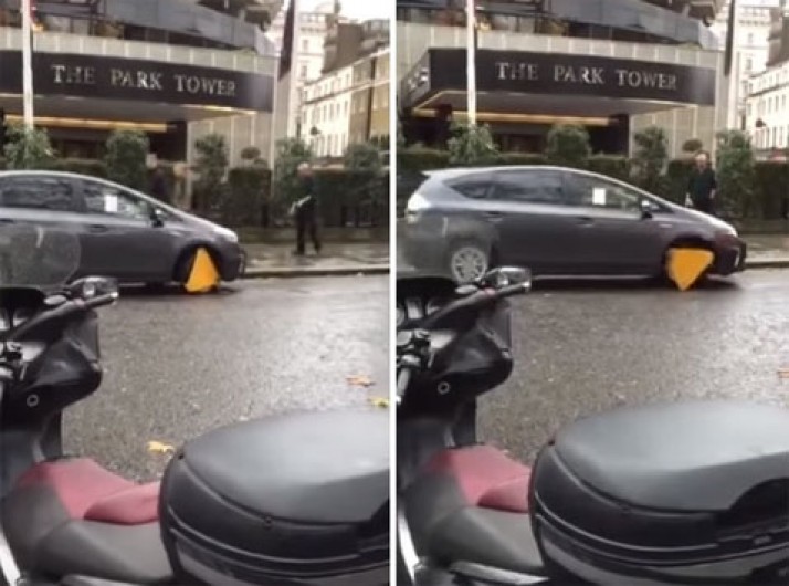 Após infração, motorista tenta dirigir carro com roda bloqueada