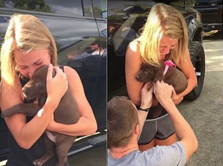 Homem entrega cãozinho com anel ao pedir namorada em casamento