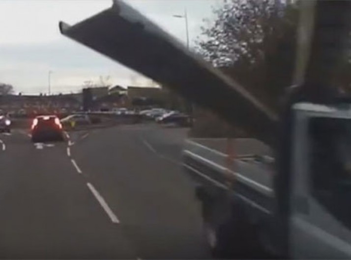 Caminhão com caçamba levantada derruba passarela na Via Anchieta