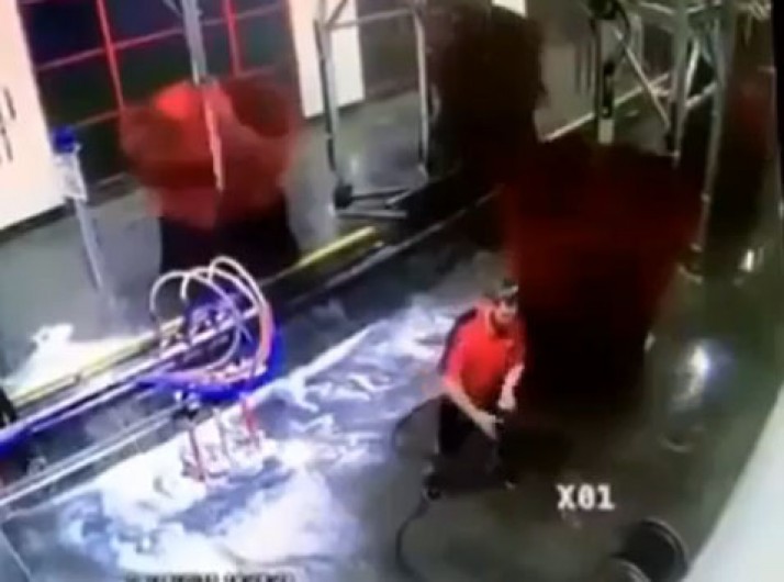 Gerente se atrapalha e fica preso no escovão do Lava Rápido