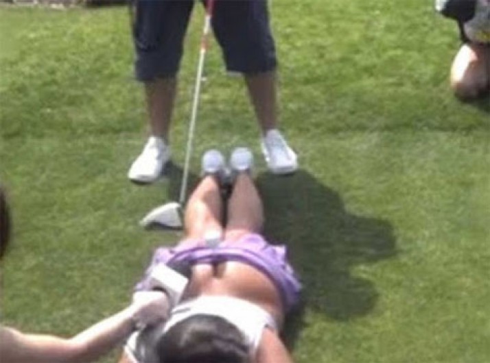 Modelo fica ferida após DJ lançar bola de golfe colocada em seu bumbum
