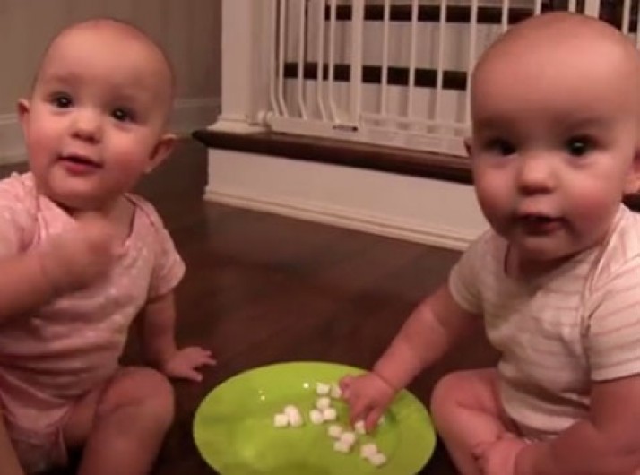 Gêmeas encontram pacote de marshmallow e dividem entre elas