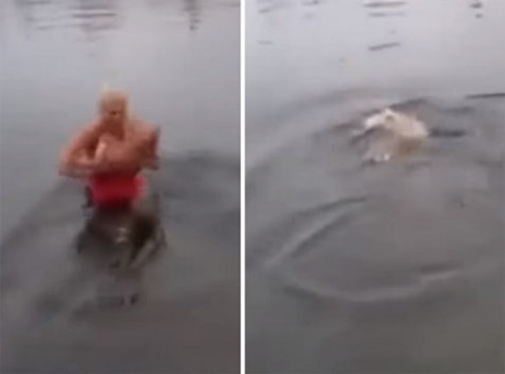 Mãe mergulha o filho em lago gelado e diz que 'faz bem à saúde'