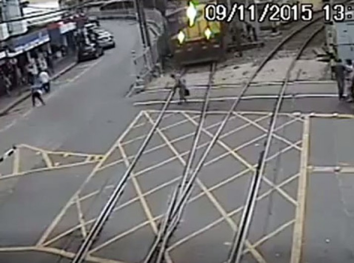 Idoso se arrisca em ferrovia e quase é atingido por trem no RJ