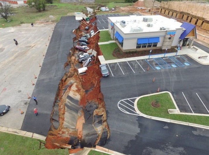 Cratera se abre e 'engole' 14 carros em estacionamento nos EUA