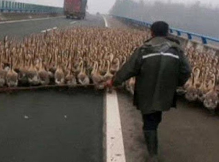 Para poupar dinheiro, chinês leva mais de 1.300 gansos por rodovia
