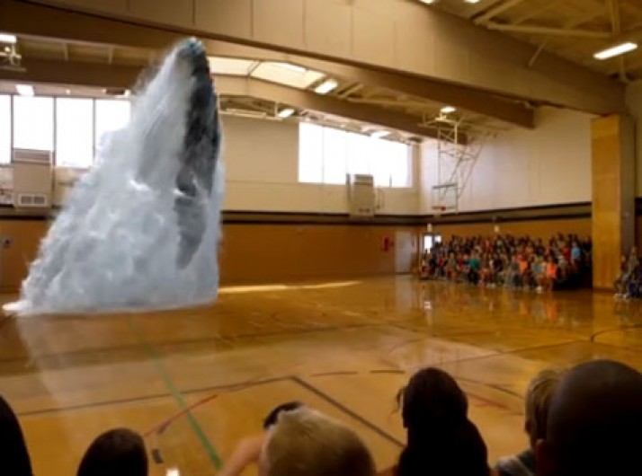 Baleia faz salto impressionante em ginásio de esportes