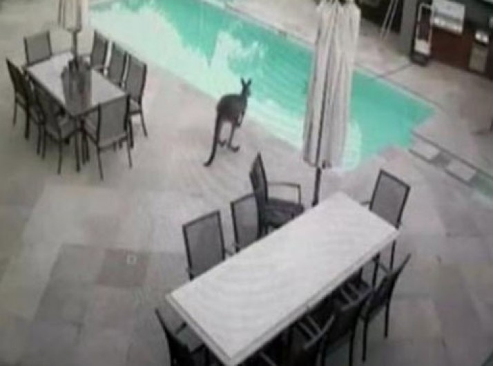 Canguru é flagrado saltando em piscina de casa na Austrália