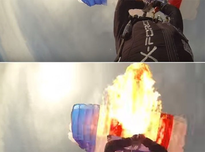 Mulher atrás de fortes emoções incendeia paraquedas durante salto