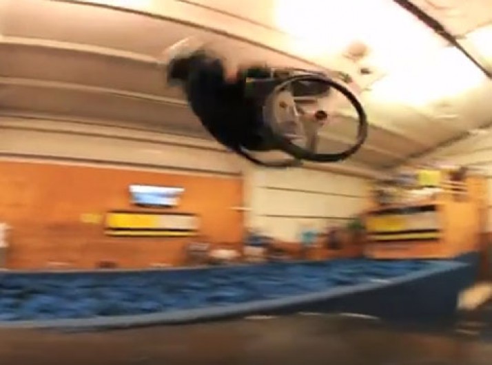 Cadeirante realiza salto mortal duplo em cadeira de rodas