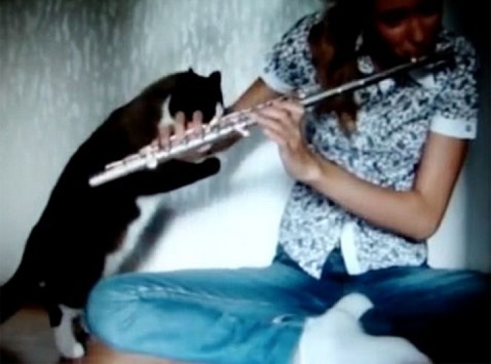 Gato 'revoltado' tenta fazer dona parar de tocar flauta e vira hit