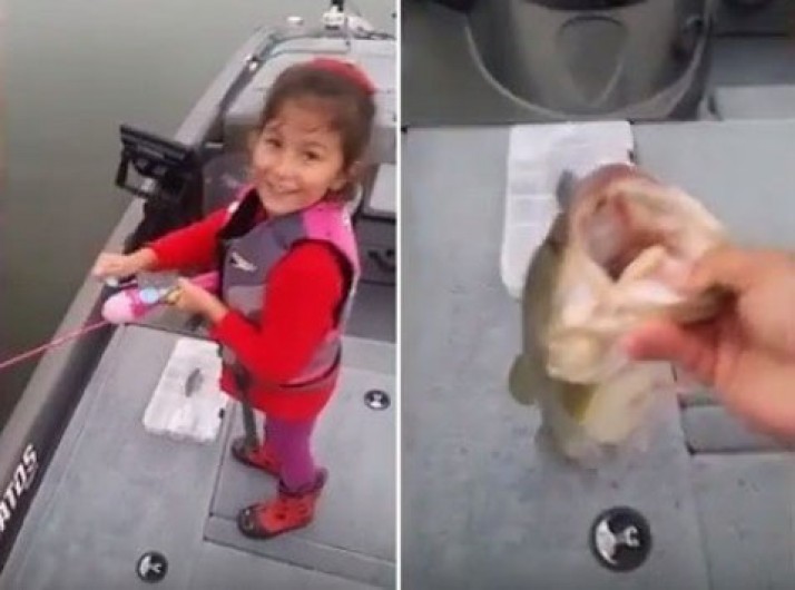 Menina fisga peixe de 50cm usando vara de pescar da Barbie