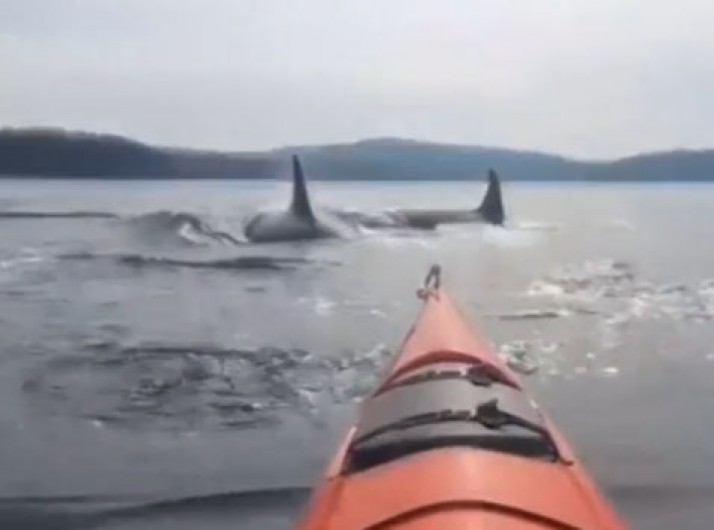 Garotas em caiaque cruzam com grupo de orcas nos Estados Unidos