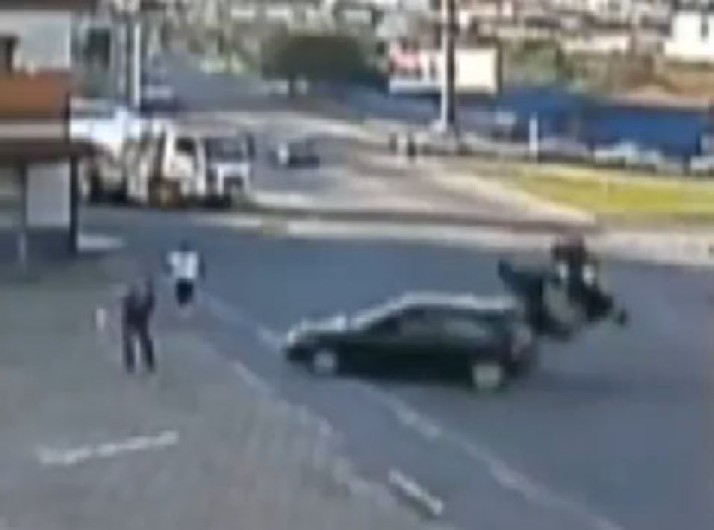 Motociclista é arremessado ao ser atingido por carro em Varginha (MG)