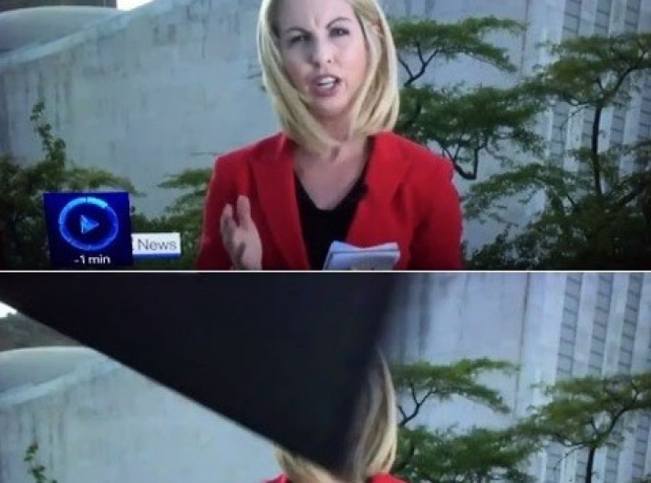Repórter escapa por um triz de ser atingida por placa ao vivo