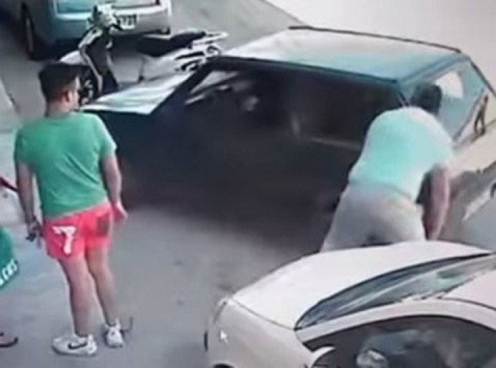 Motorista vê o carro preso na vaga e resolve tirar veículo na mão