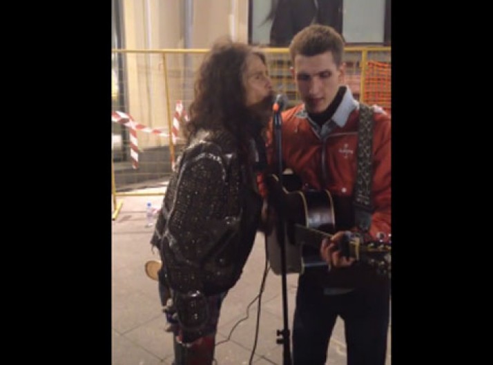 Steven Tyler, do Aerosmith , canta com músico de rua em Moscou