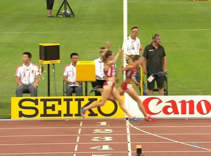 Americana comemora antes da linha de chegada e perde medalha