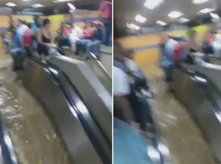 Escadas rolantes viram 'cachoeira' em estação de metrô na Venezuela