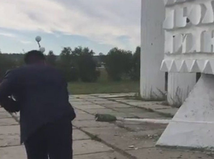 Homem se dá mal ao jogar garrafa de champanhe em monumento