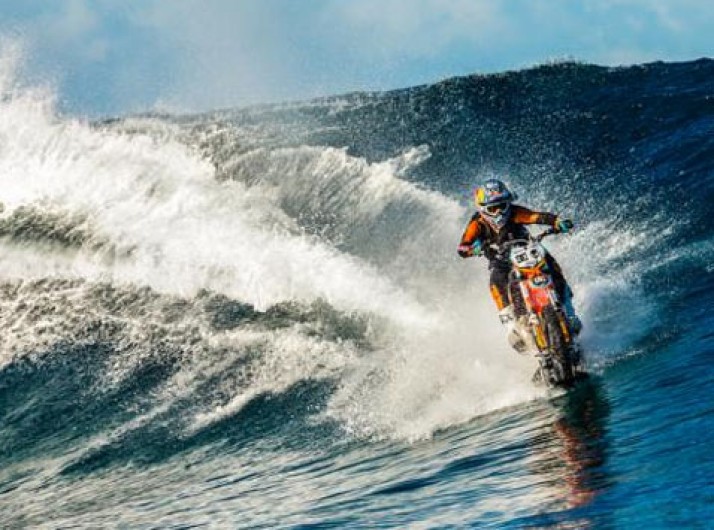 Dublê australiano surfa ondas do Taiti em cima de uma moto; veja