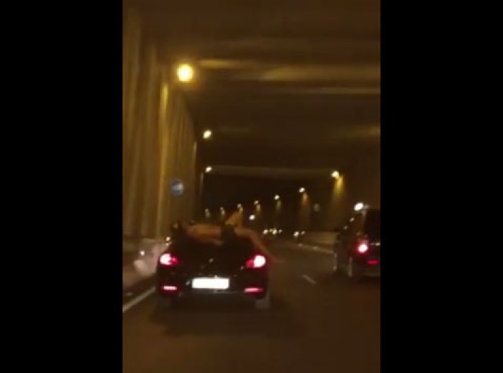 Homem se arrisca em cima de conversível a 100 km/h em autoestrada
