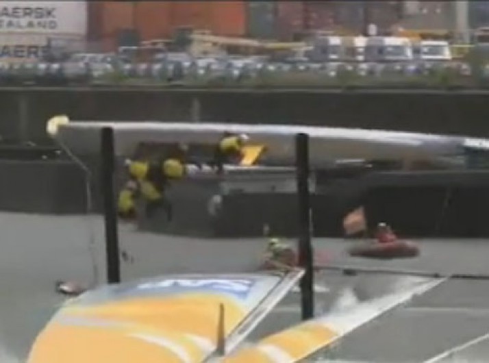 Barco vira em campeonato de vela e atletas ficam pendurados