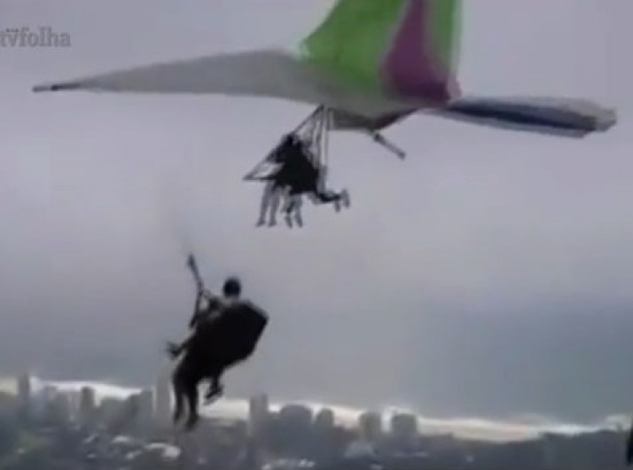 Vídeo mostra acidente entre parapente e asa-delta em ponto turístico do Rio