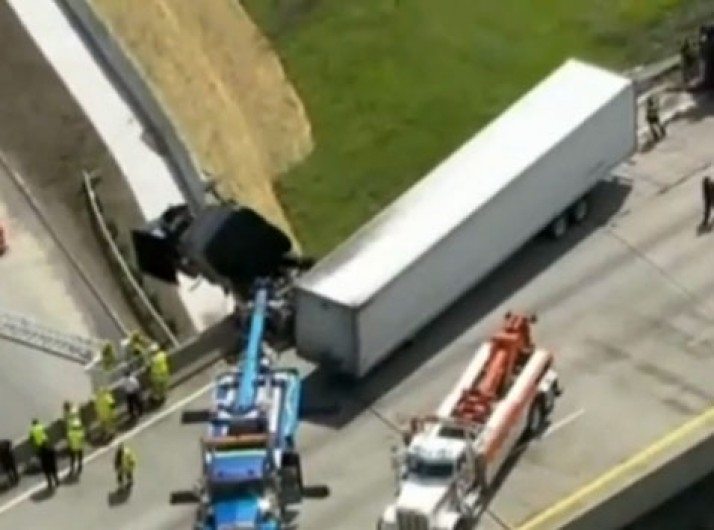 Motorista é resgatado de cabine de caminhão em ponte nos EUA