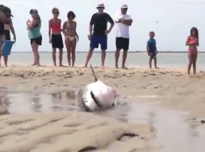Tubarão fica encalhado em praia nos EUA ao tentar capturar gaivota