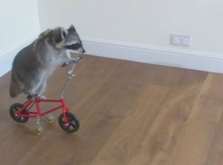 Guaxinim 'superinteligente' que anda de bicicleta vira sensação na web