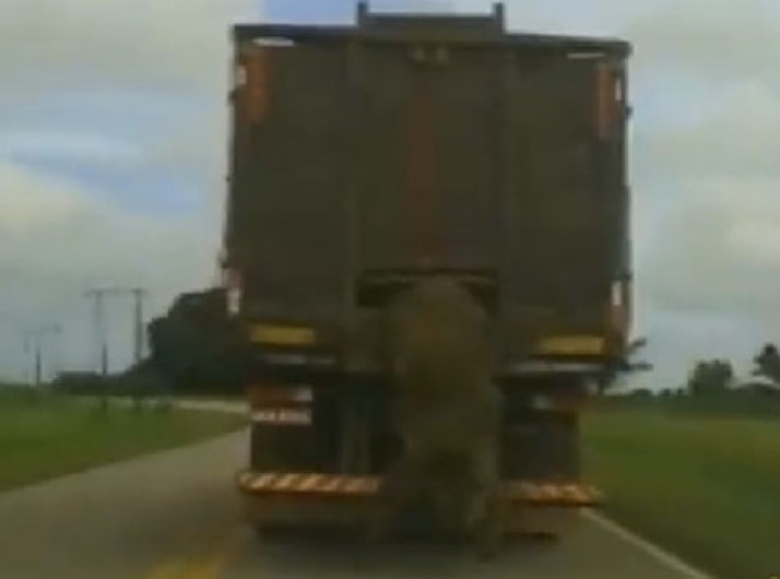 Vaca fica pendurada em caminhão em rodovia do Pará
