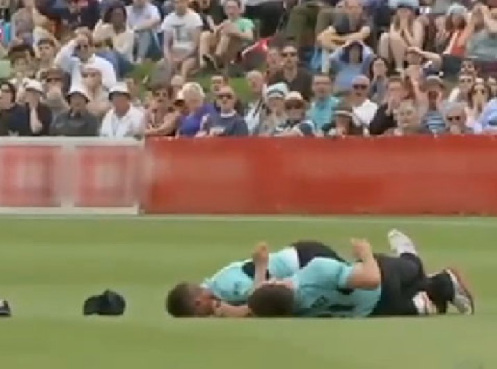 Atletas batem a cabeça e desmaiam durante partida de críquete