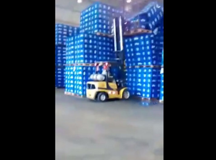 Operador de empilhadeira toma um "banho"de cerveja; veja