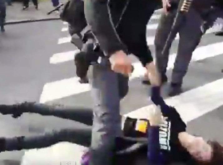 Mulher leva soco de PM e vai ao chão durante protesto na USP
