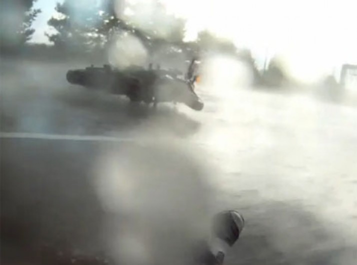 Motociclista registra vídeo dele aquaplanando e caindo em rodovia