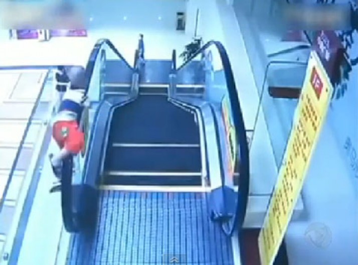 Criança de dois anos cai de escada rolante em shopping na China