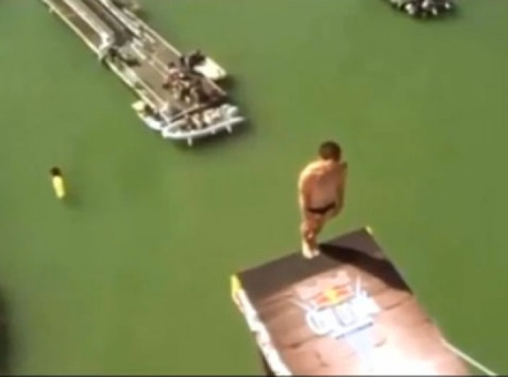 Saltador bate cabeça em trampolim ao saltar de 27 metros de altura