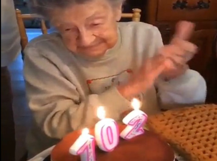 Velhinha perde a dentadura ao assoprar velas de 102 anos; veja