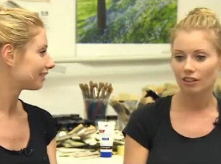 Gêmeas artistas pintam a 4 mãos e 'lêem pensamento' uma da outra
