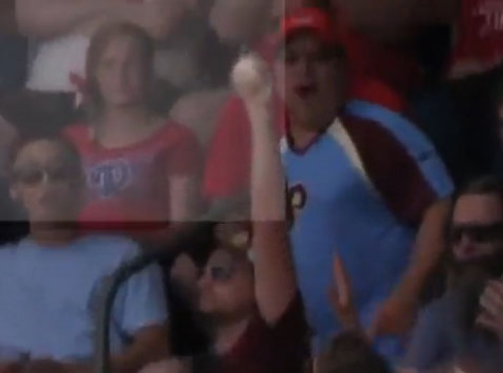 Pai pega bola rebatida no beisebol, apesar de estar com bebê em canguru